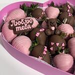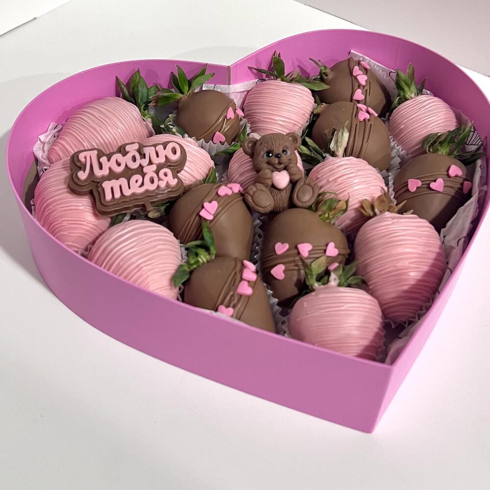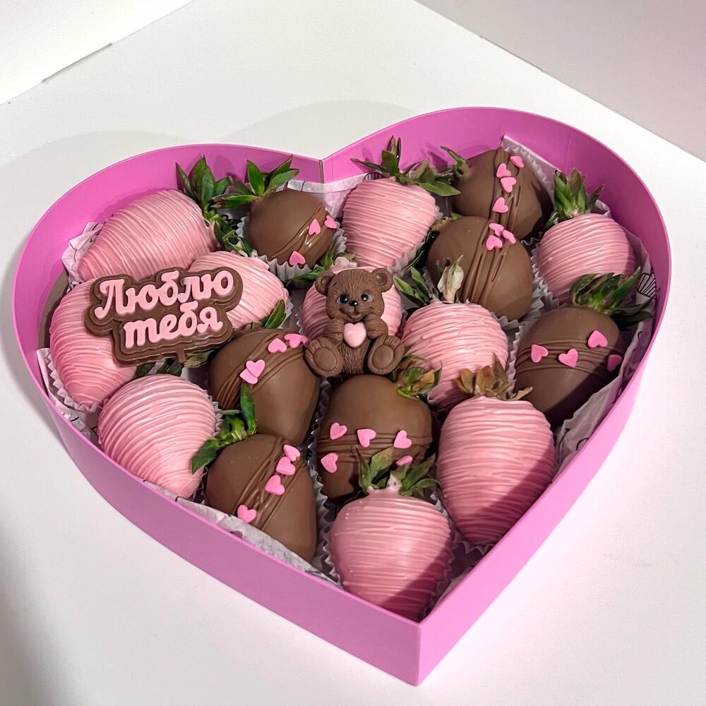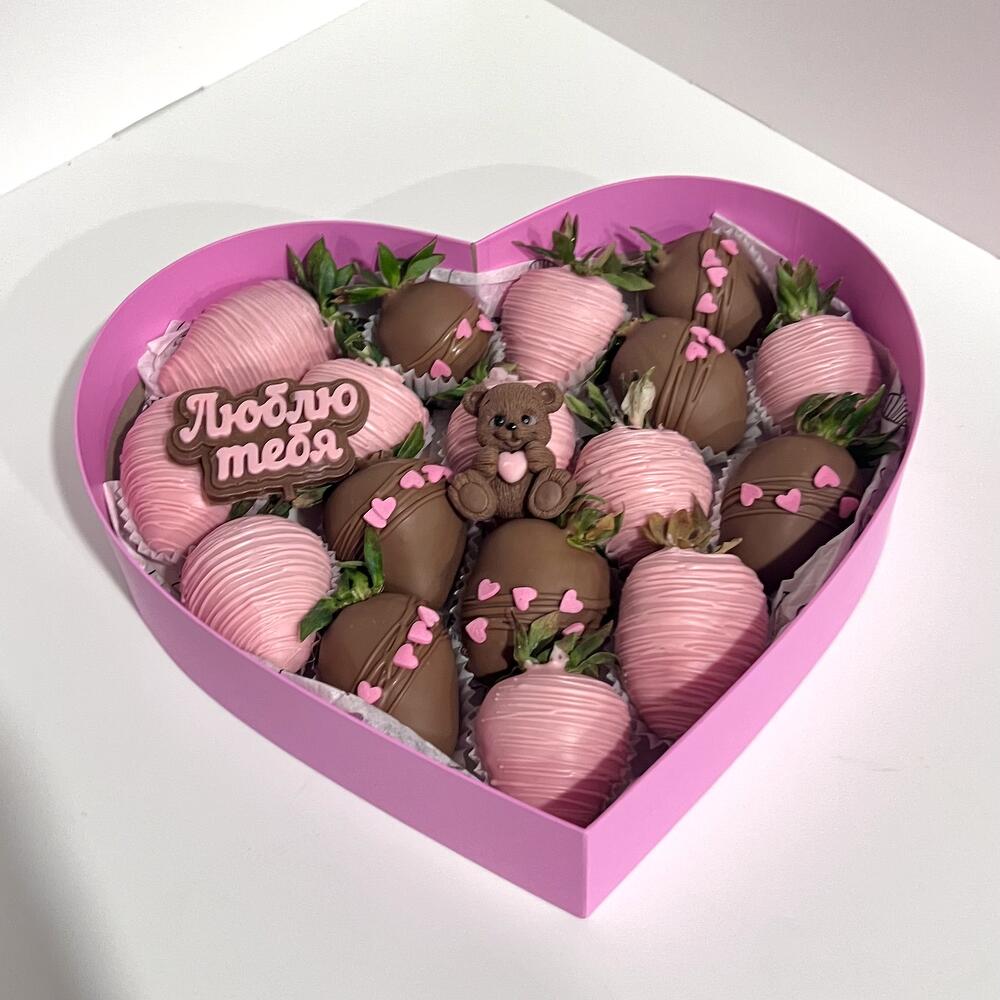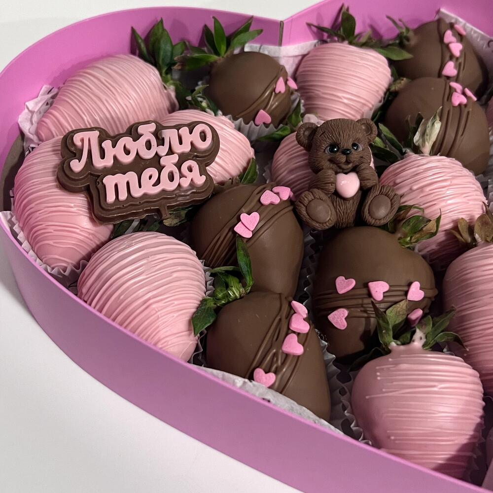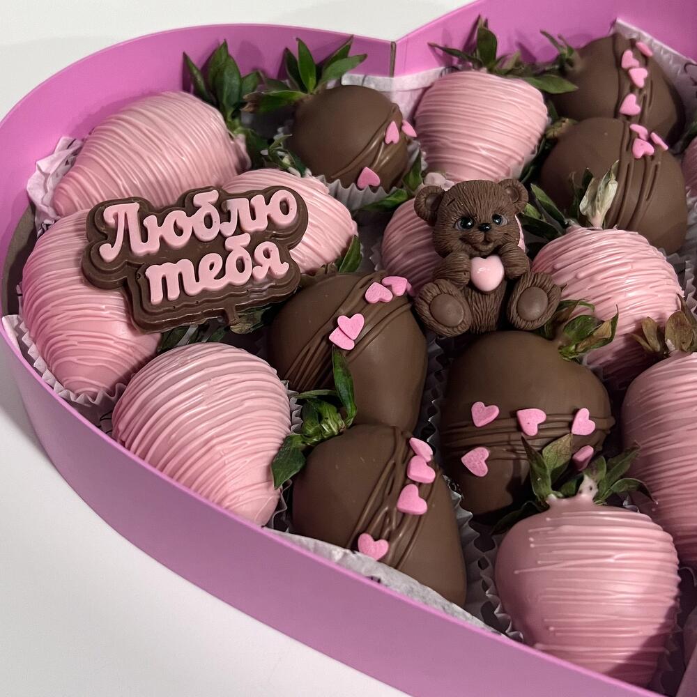 Клубника в молочном и розовом шоколаде с шоколадным мишкой