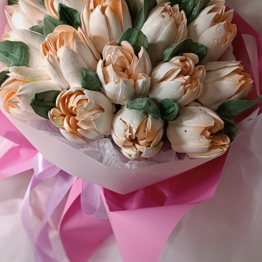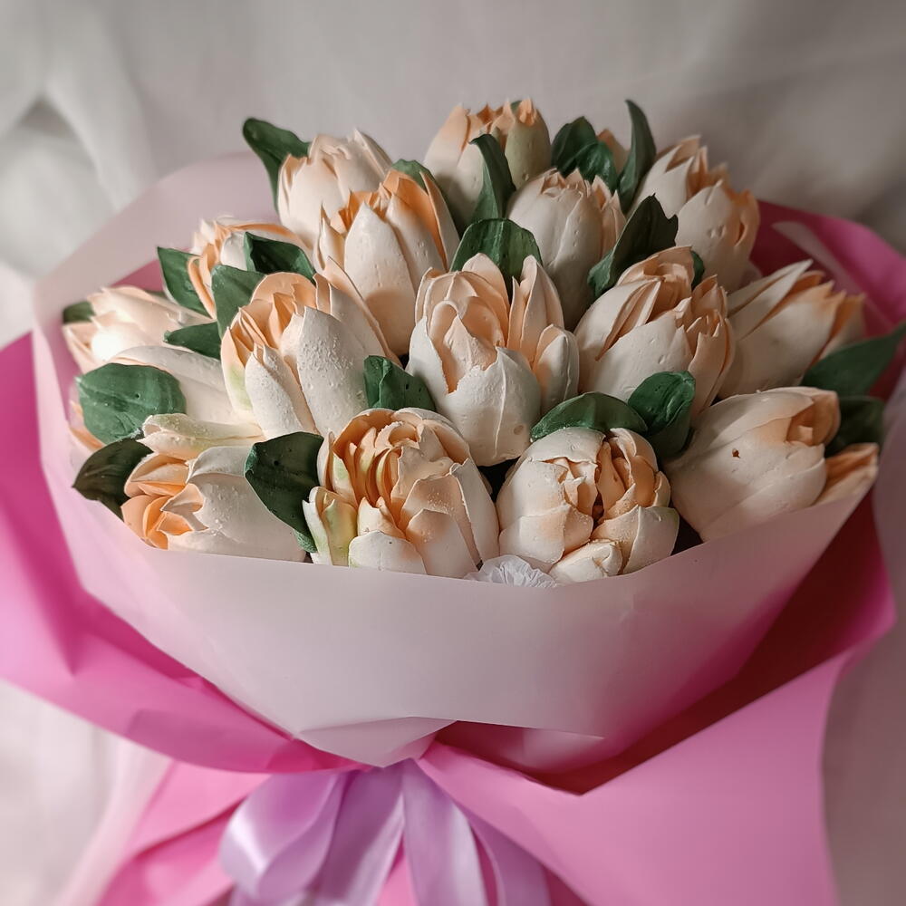 Зефирный букет тюльпанов подарит невероятные эмоции.