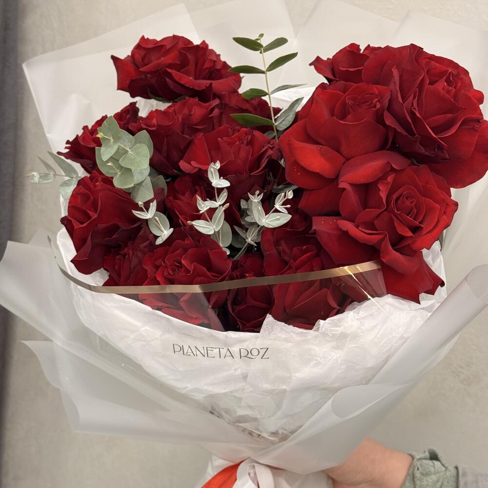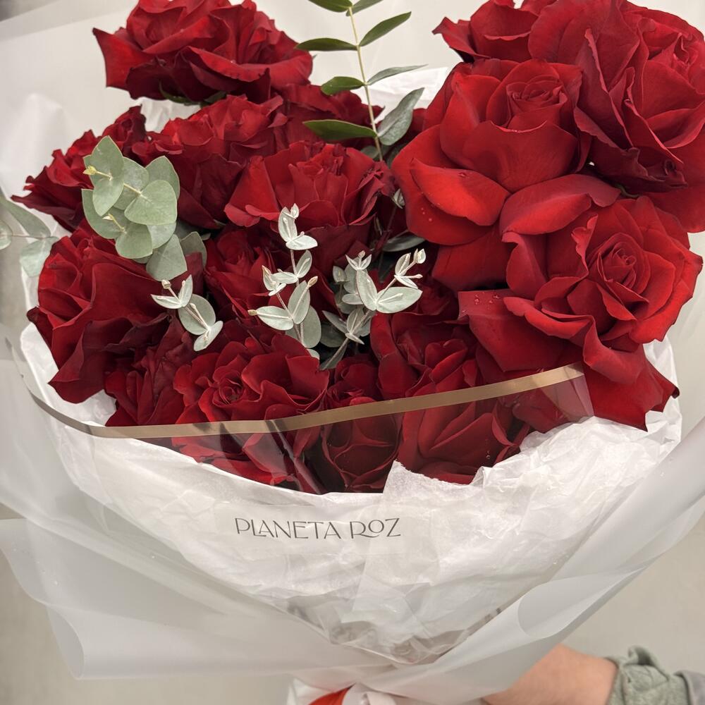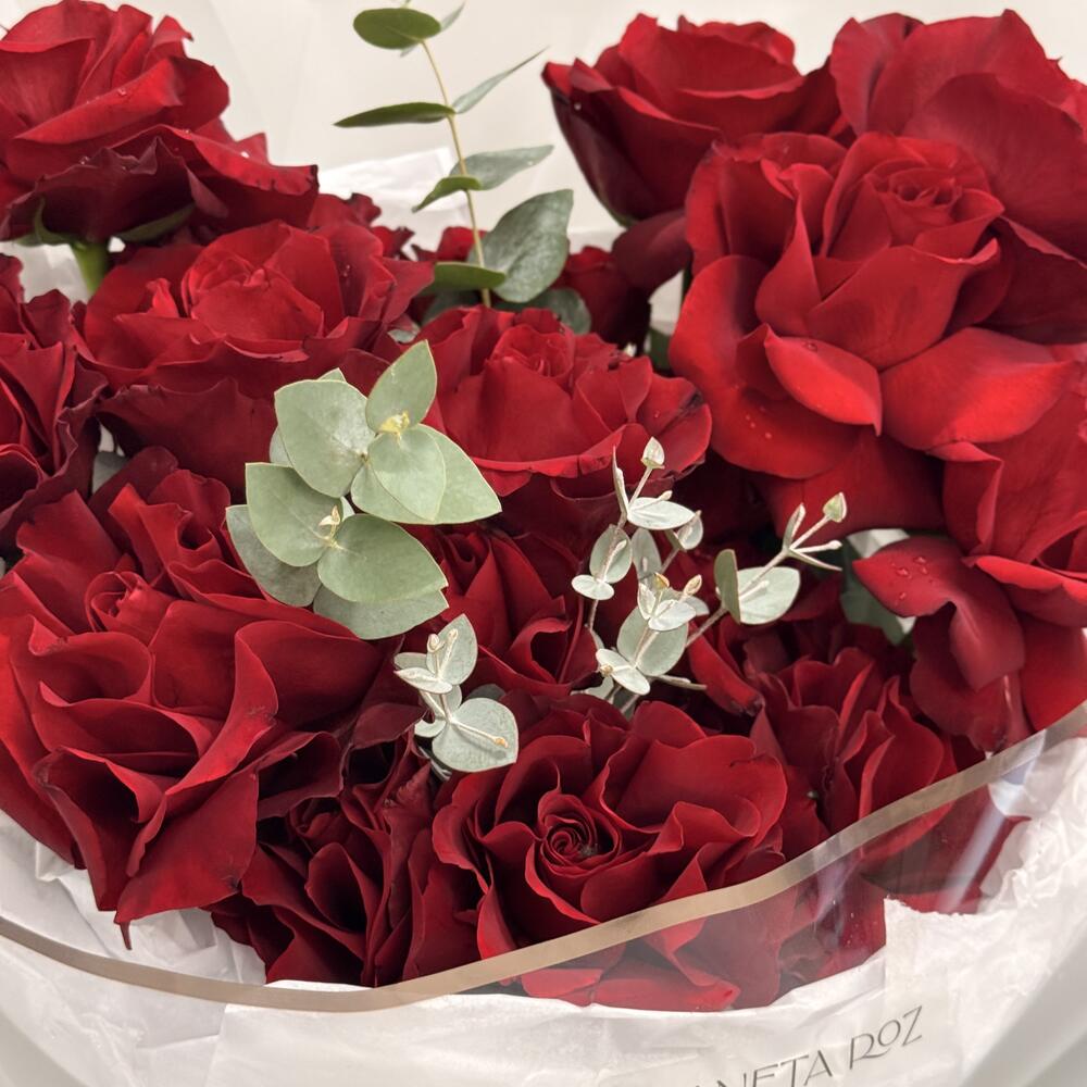 Упаковка дизайнерская - 1 шт. Французская роза - 19 шт. Эвкалипт Цинерея - 1 шт.