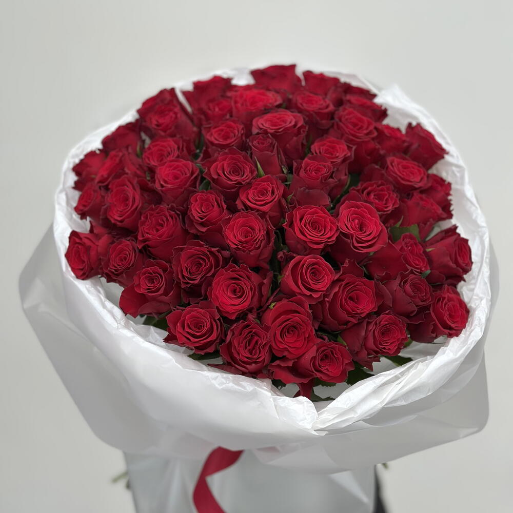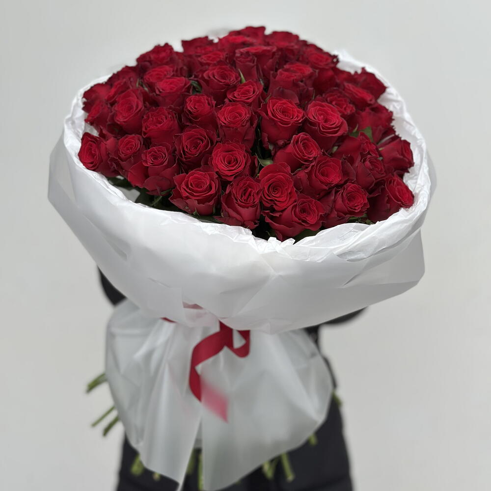 Роза - 51 шт. Лента атласная - 2 шт. Упаковка дизайнерская - 2 шт.