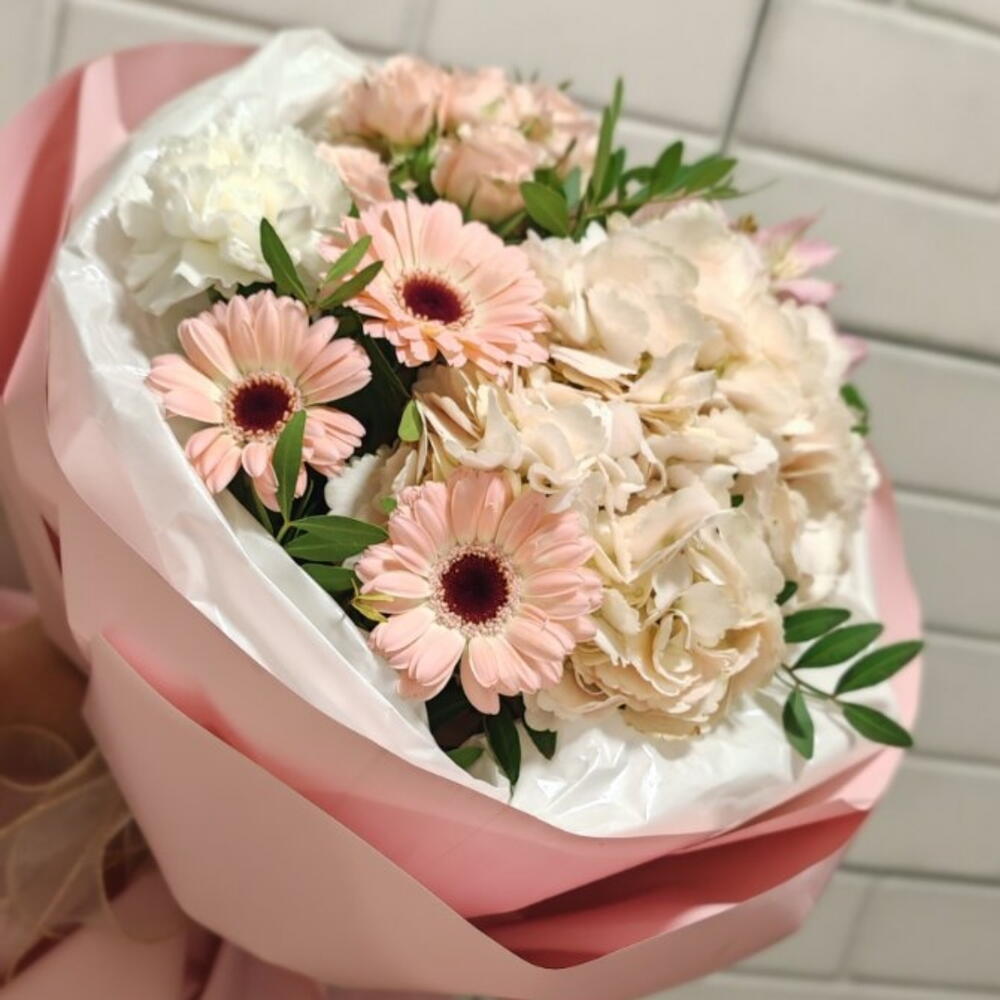 Букет с герберой и гортензией