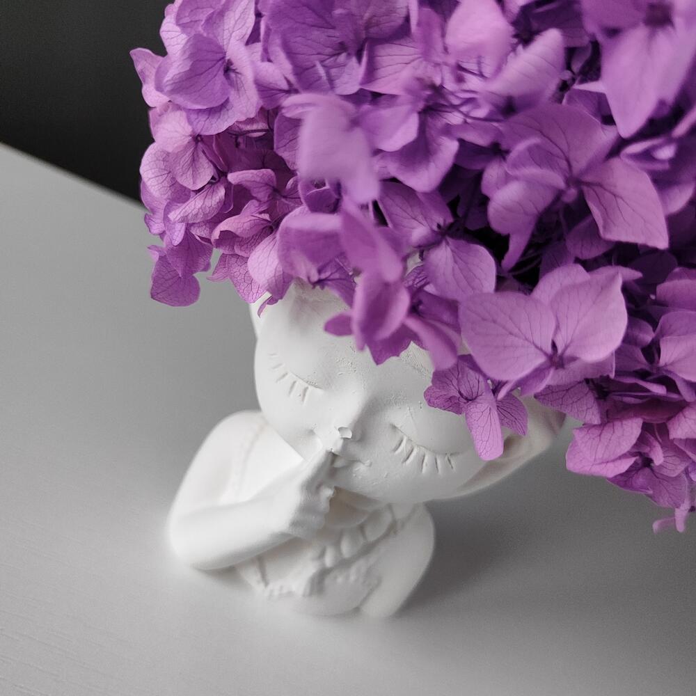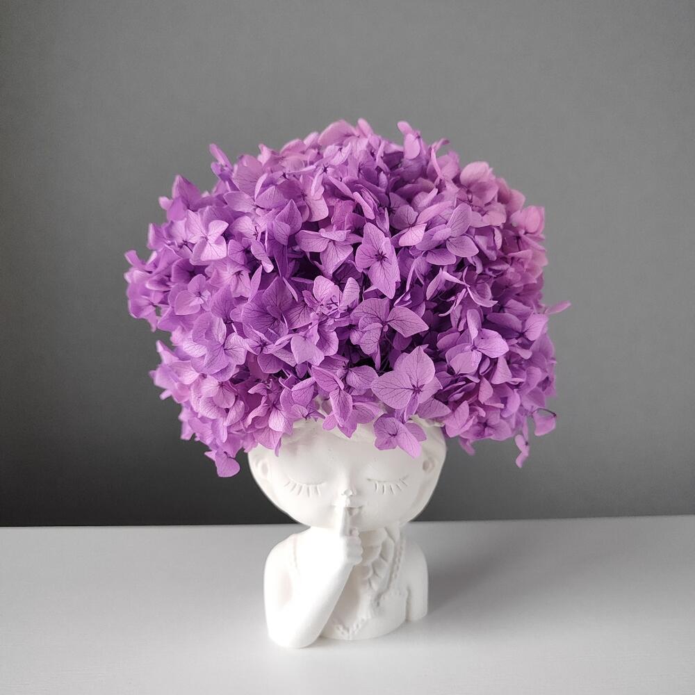 Гортензия Стабилизированная Фиолетовая - 1 шт. кашпо из гипса ручной работы - 1 шт.