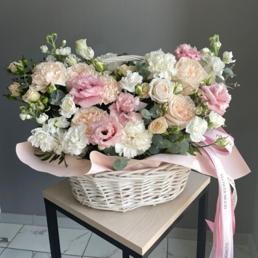 Корзина по составу собирается на усмотрение флориста, уважаемые заказчики , пожалуйста имейте это ввиду , в комментарии к заказу вы можете указать пожелания по сочетанию цветов (яркая, нежная,веселая и т.д )