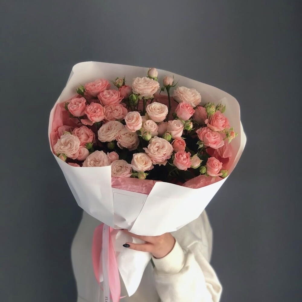 Упаковка дизайнерская - 1 шт. Кустовая роза пионовидная - 9 шт.