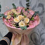 Альстромерия - 2 шт. Гипсофила - 1 шт. Кустовая роза - 2 шт. Упаковка дизайнерская - 1 шт. Эвкалипт Микс - 1 шт.