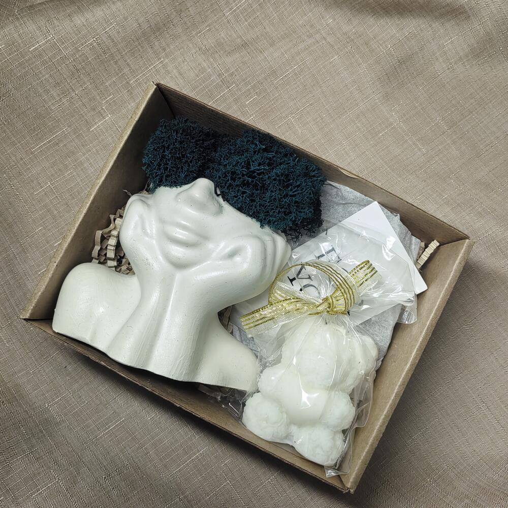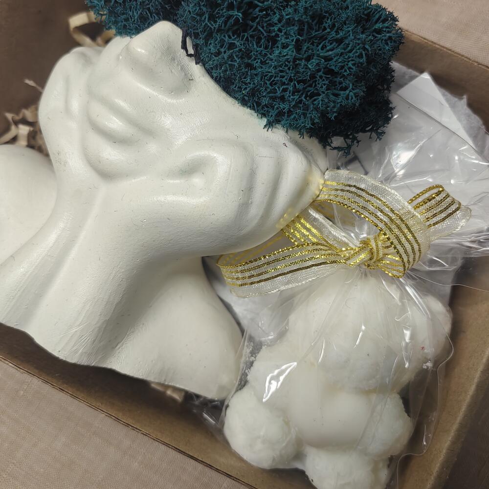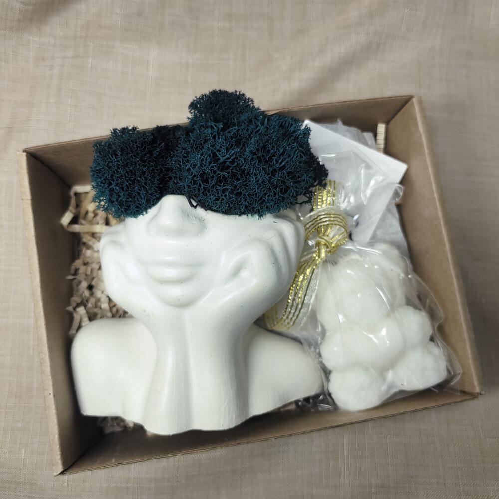 свеча из натурального соевого воска - 1 шт. мох-ягель стабилизированный - 1 шт. кашпо из гипса натурального - 1 шт.