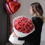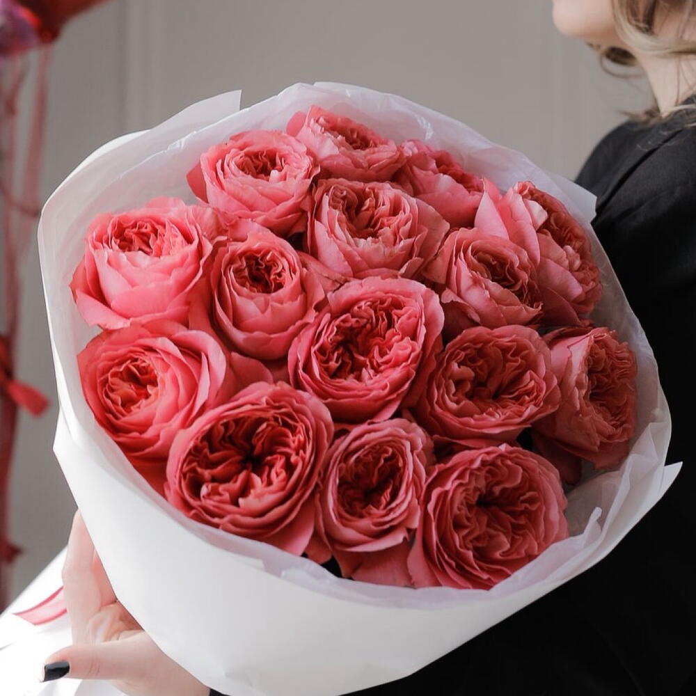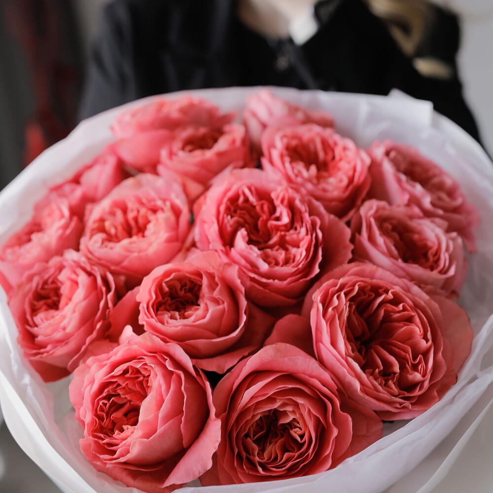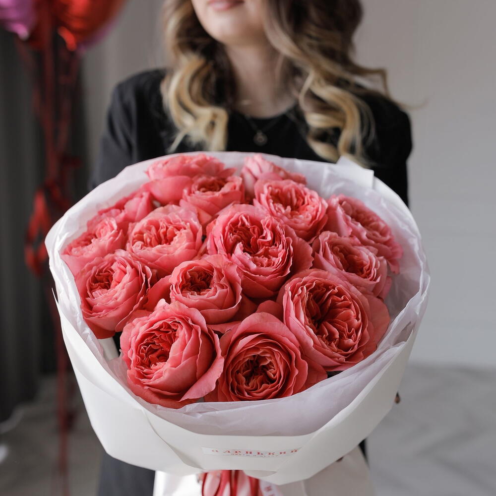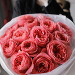 Лента атласная - 1 шт. Упаковка дизайнерская - 4 шт. пинк экспрешн роза пионовидная - 15 шт.