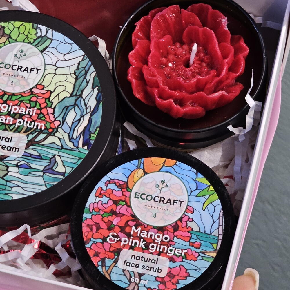 Нстуральный скраб для лица 60 г,бренд Эко Крафт Натуральный баттер крем для тела 150 г,бренд Эко Крафт Свеча ароматическая 90 г,бренд Артишок