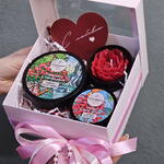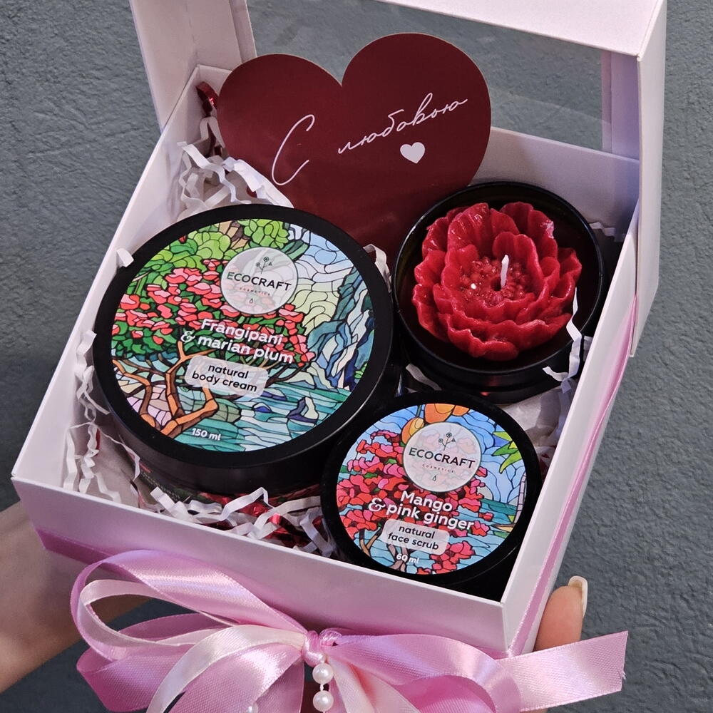 Ароматный питательный баттер крем и скраб для лица с манго и имбирем.Подарочный набор дополнен аромасвечой с запахом пионы.Упаковано в подарочную коробку,дополнено открыткой.