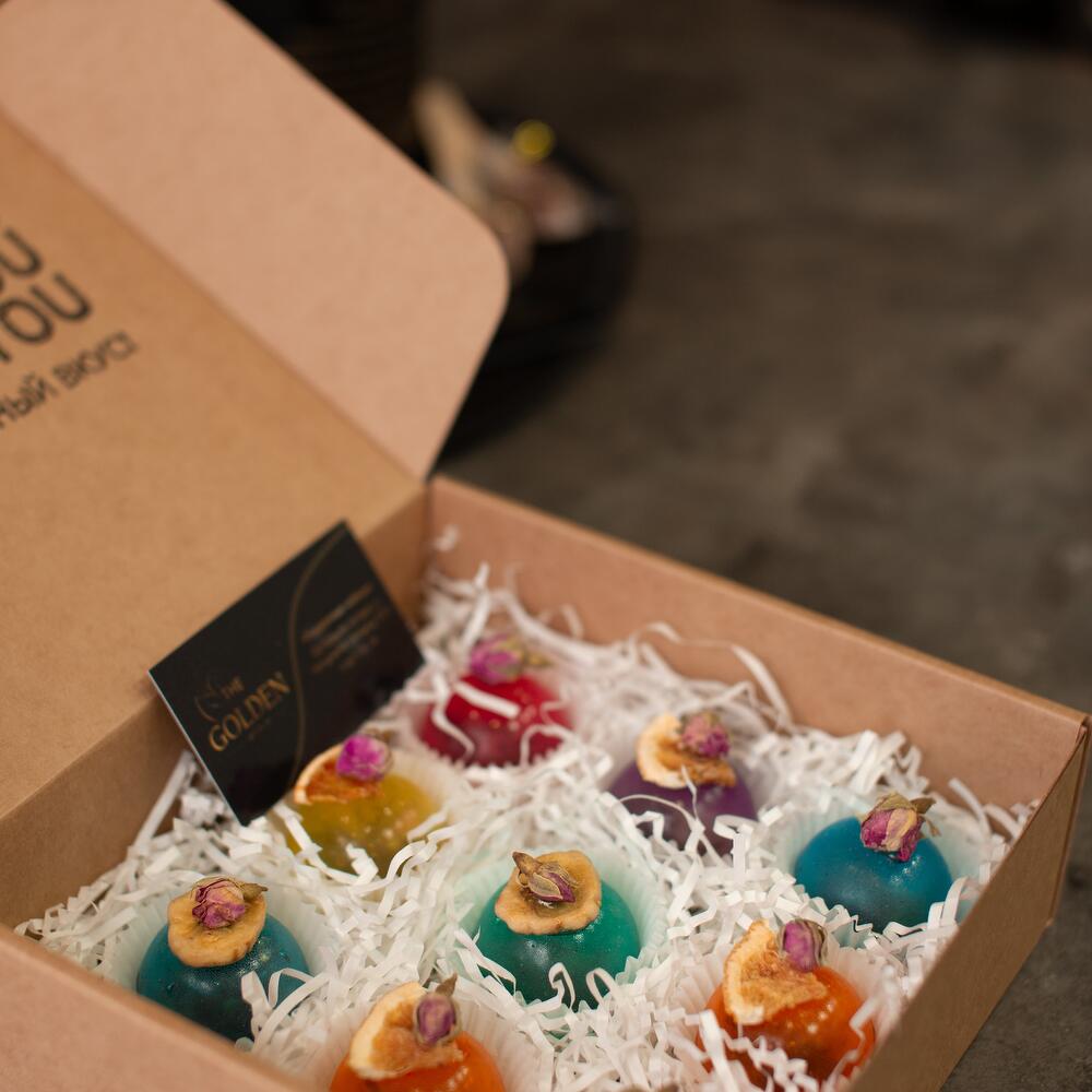 Набор из 9 маленьких бомбочек, рассчитанных для заваривания чая в кружке. Ассорти вкусов. Цвета бомбочек, украшение и наполнение можно изменить по желанию. Чайные бомбочки сделаны из изомальта (сертифицированный заменитель сахара, который безопасен для диабетиков и детей) , внутри каждой бомбочки премиальный чай разных видов (черный, зеленый, травяной, фруктовый, улун) , украшаются чайные бомбочки вручную натуральными сушенными фруктами, ягодами, корицей, чайными цветами и тд. На каждой чайной бомбочке для Вашего удобства есть стикер с названием и полным составом чая. Данные чайные бомбочки рассчитаны на кружку объемом 250-300 мл , можно заварить чай повторно. Инструкция по завариванию бомбочек прилагается к каждому набору! Срок годности бомбочек 6 месяцев. Хранить можно дома при комнатной температуре, в сухом месте без попадания прямых солнечных лучей Перед использованием рекомендуем положить чайную бомбочку в морозильник на пару минут, тогда вы услышите невероятный хруст бомбочки при заваривании! - Подходит диабетикам - Безопасен для детей - Безопасен для зубов - Подходит тем, кто отказался от сахара - Идеальный вариант подарка на любой случай Вкусы чая: Сказка леса Чай зеленый байховый листовой, кусочки клубники, плоды клюквы, лепестки цветов китайской розы Ночь Клеопатры Чай зеленый улун, бутоны и лепестки китайской розы, кусочки ананаса, стружка и кубики мякоти кокоса Тропический микс Чай зеленый байховый листовой, кусочки ананаса, кусочки яблока, цедра апельсина, лепестки цветов китайской розы Сокровища шейха Чай зеленый байховый листовой, кусочки яблока, кусочки ананаса, цедра цитрусовых, лепестки цветов китайской розы, лепестки цветов василька, лепестки цветов подсолнуха Альпийский луг Цветы ромашки, листья мяты, лепестки мелиссы, лимонная трава, цедра и кусочки апельсина, плоды шиповника, клубничные листья, плоды аронии Загадка востока Чай черный байховый листовой, кусочки ананаса, цедра и кусочки апельсина, плоды шиповника, лепестки цветов сафлора, лепестки китайской розы, лепестки василька, лепестки цветов подсолнуха Нахальный фрукт Чай черный байховый листовой, кусочки ананаса, плоды ягод брусники, плоды вишни, лепестки цветов календулы Брызги шампанского Чай черный байховый листовой, листья клубники, листья ежевики, лепестки цветов василька, кусочки ананаса, кусочки папайи, лепестки цветов календулы Лесная ягода Чай каркаде фруктовый “Hibiscus”, плоды винограда, плоды шиповника, плоды аронии, плоды папайи, кусочки яблока, кусочки ананаса Королевский десерт Чай каркаде фруктовый “Hibiscus”, банан сушенный чипсами, изюм, плоды шиповника, кусочки ананаса, плоды яблока, кусочки корицы, цедра апельсина, лепестки чайной розы Поможем скрасить Ваш вечер приятным и незабываемым чаепитием! ❤️